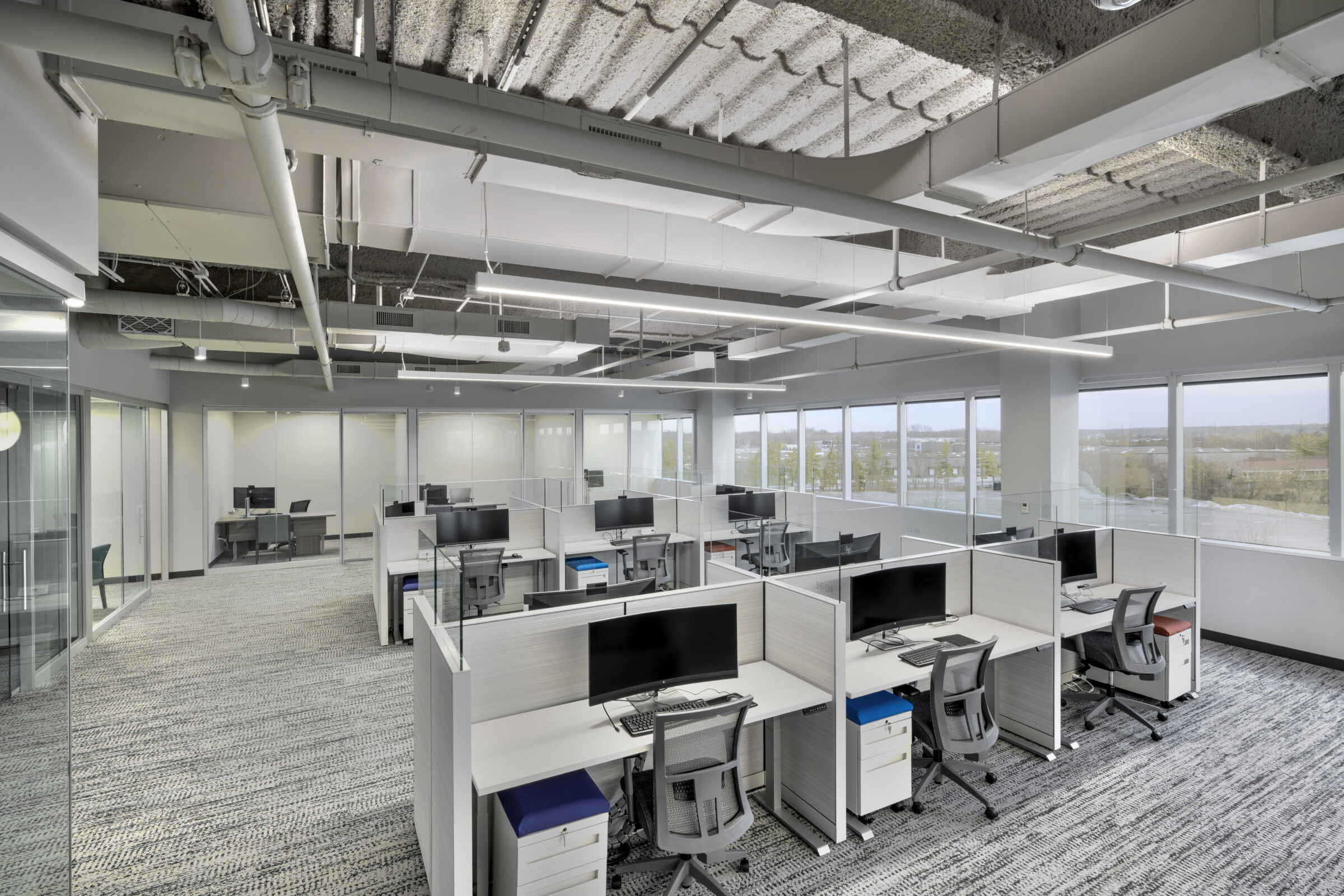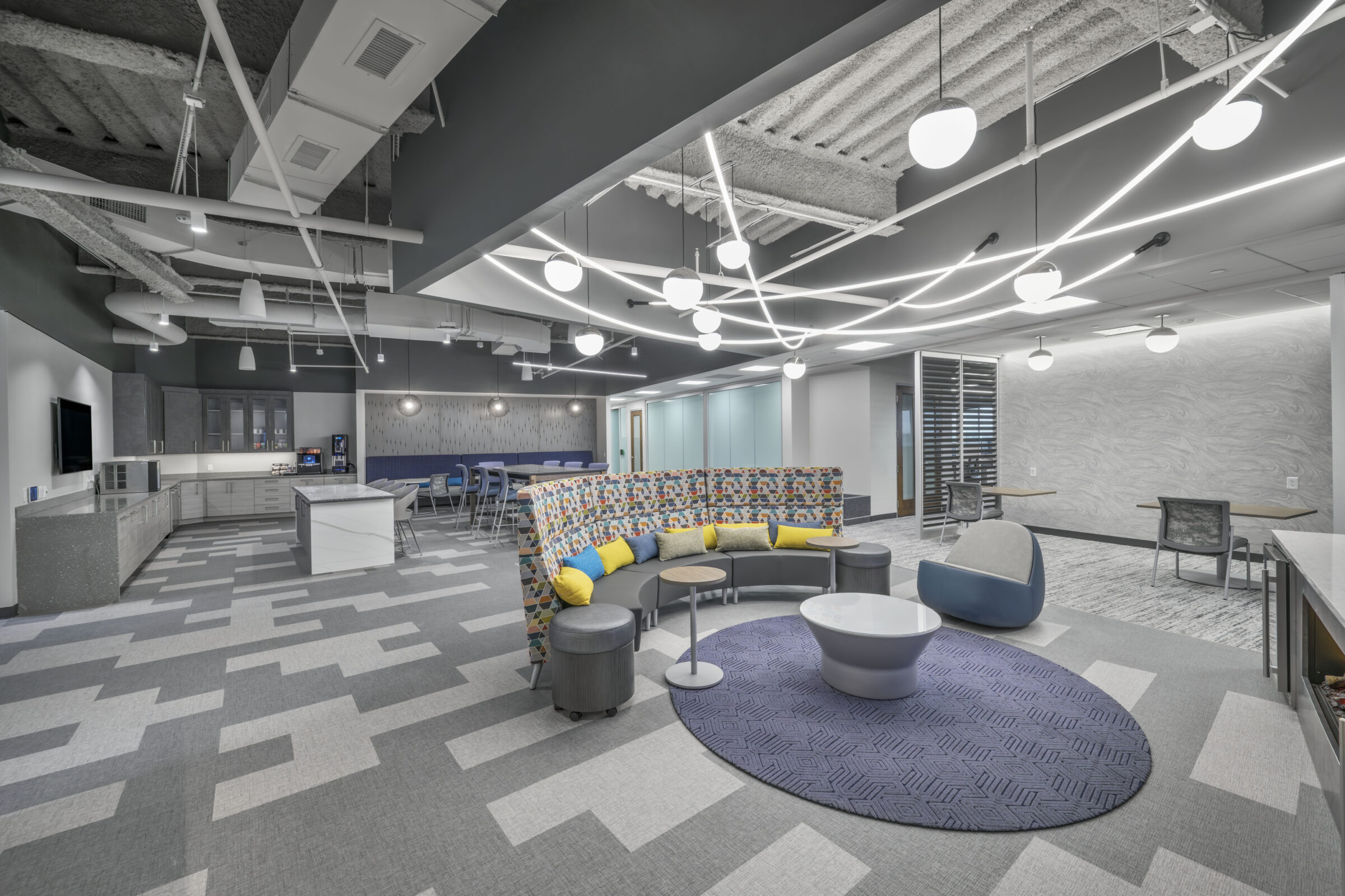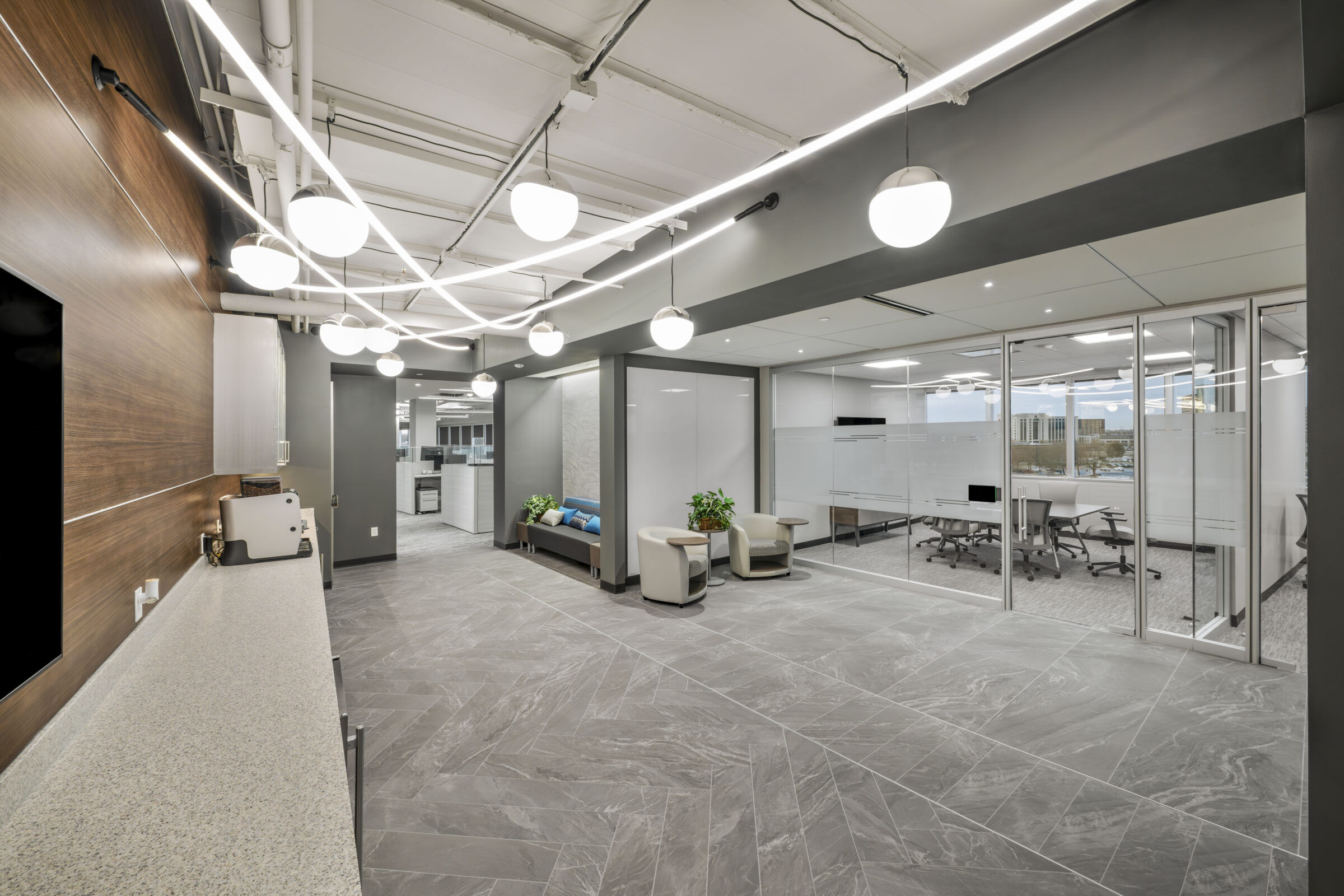 The modern, open layout reflects Baker Tilly’s design standards across its U.S. offices and commitment to sustainability. Notable elements include water vapor fireplaces accented by swinging lights, cutting-edge audio/visual technology, and integrated security systems.