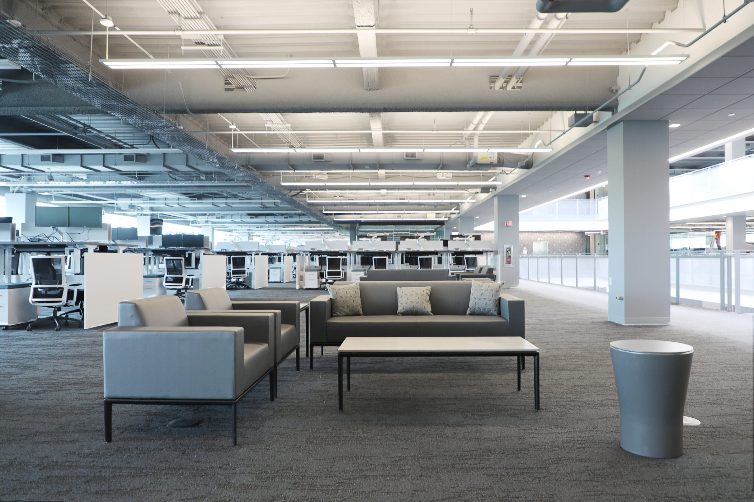 The interior space, built for 1,600 employees, required dual generators to complete, which involved heavy coordination. The buildout included a 5,000-square-foot roof terrace that was completed on a condensed schedule due to winter weather that extended late into April 2018. Despite these unavoidable scheduling challenges, the project completed on time and within the client’s budget.