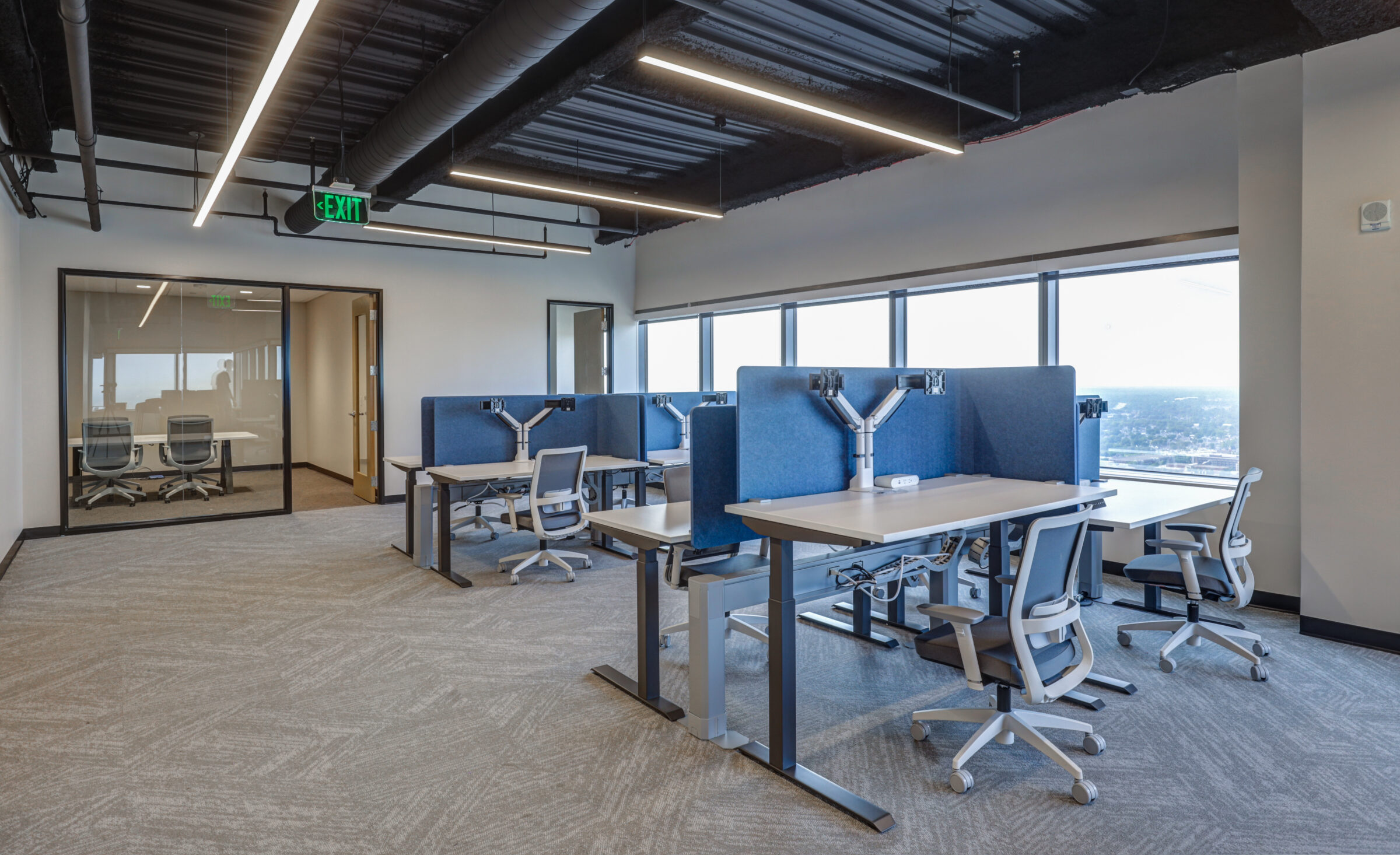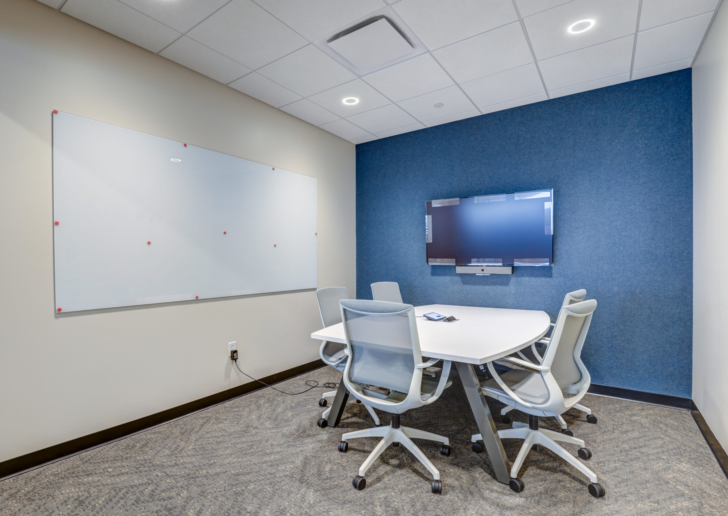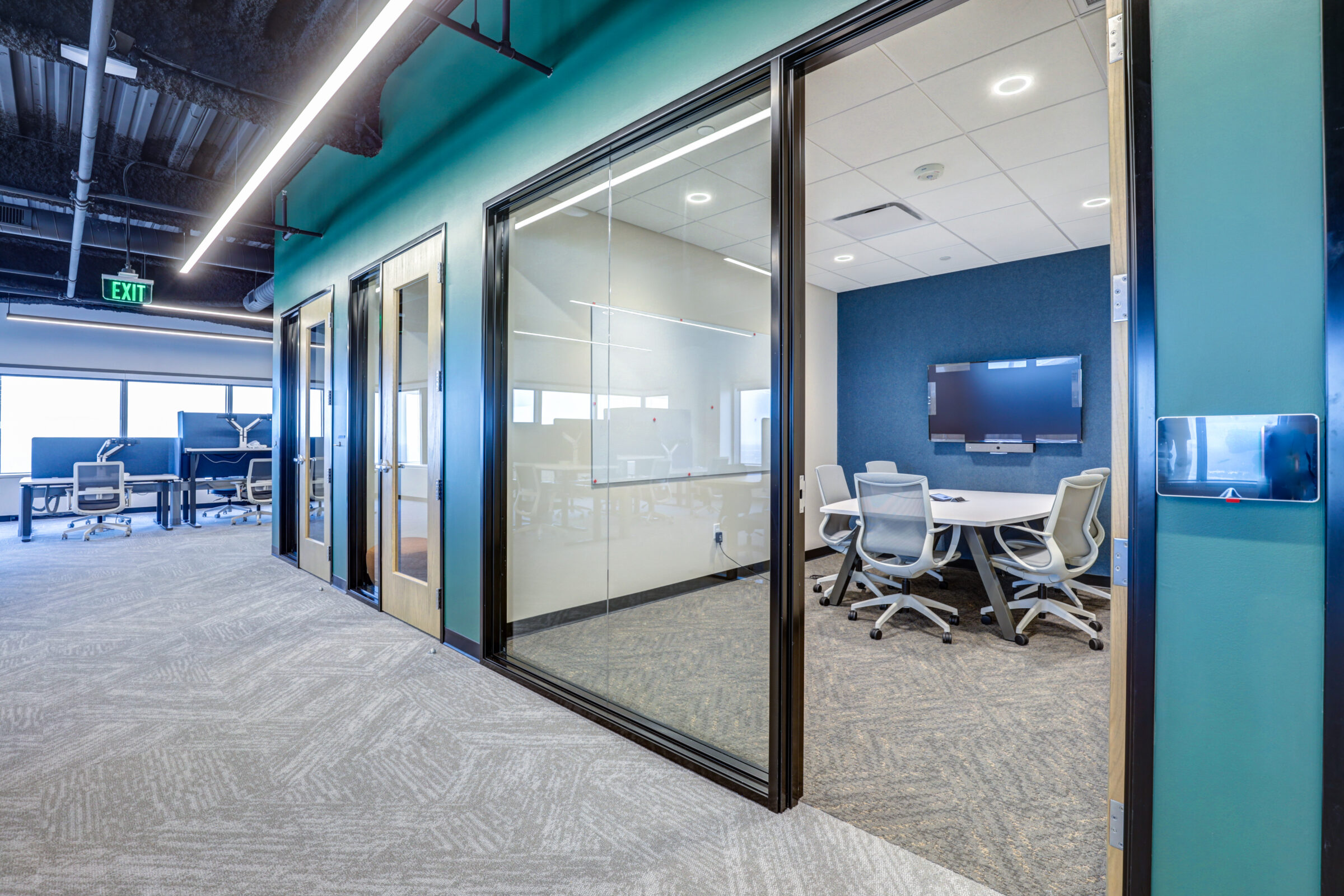 The 7,500-SF space includes a conference room, focus rooms, various meeting rooms, a kitchenette, storage and lockers. The project also consisted of custom plumbing fixtures, lighting fixtures, foldable walls and casework.