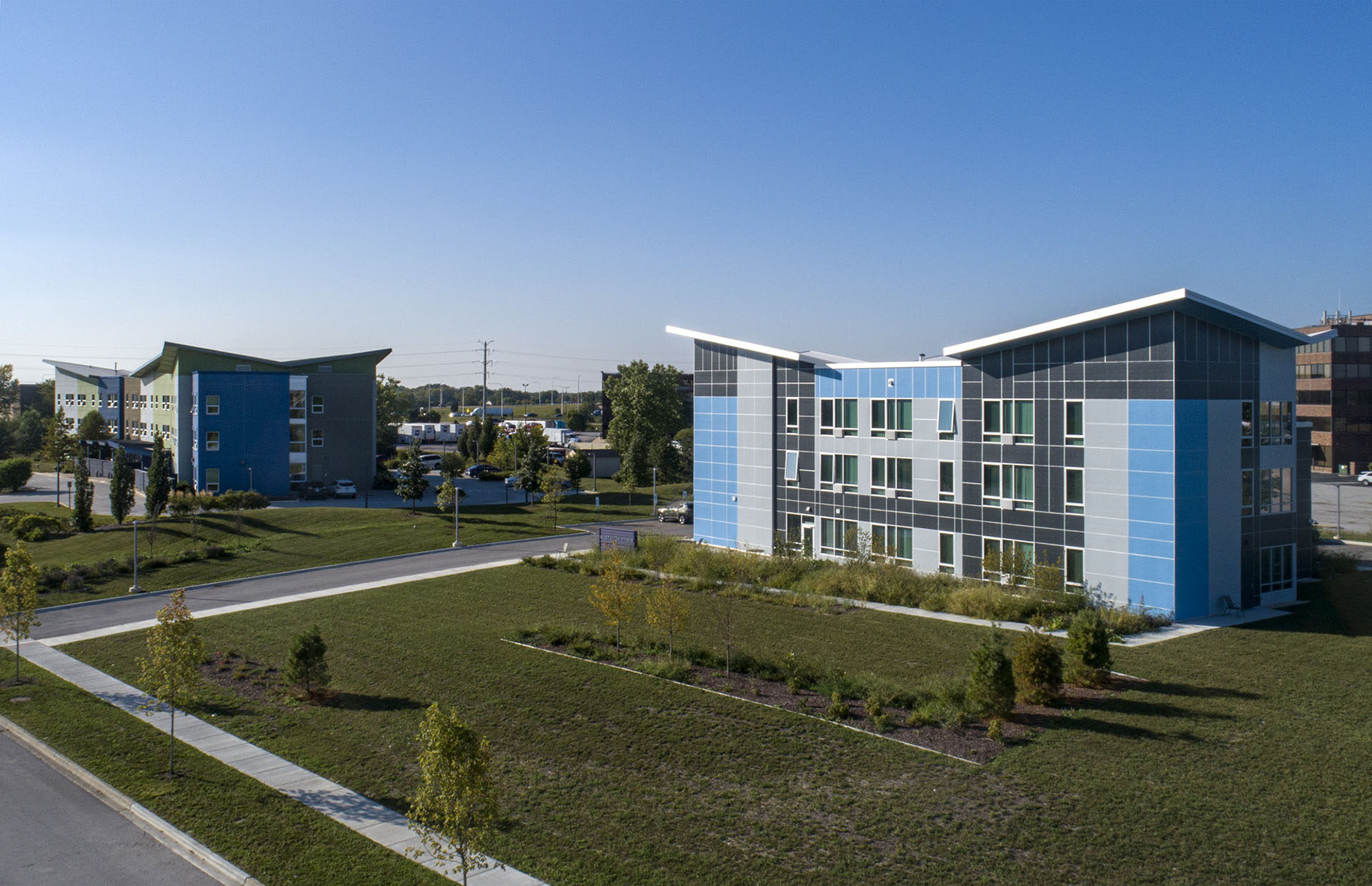 The ADA-accessible units include roll-in showers, pull-under sinks, accessible appliances and lower switches, outlets, windows and door handles. The new building joins a three-development campus on 10 acres of land in Matteson, IL.