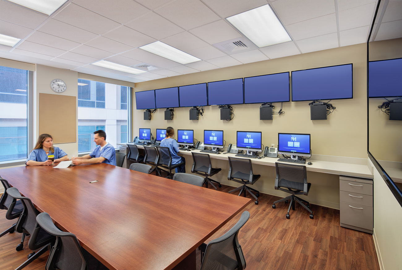 The project included the repurposing of existing shell and admin spaces for new adaptive patient rooms and support areas.
