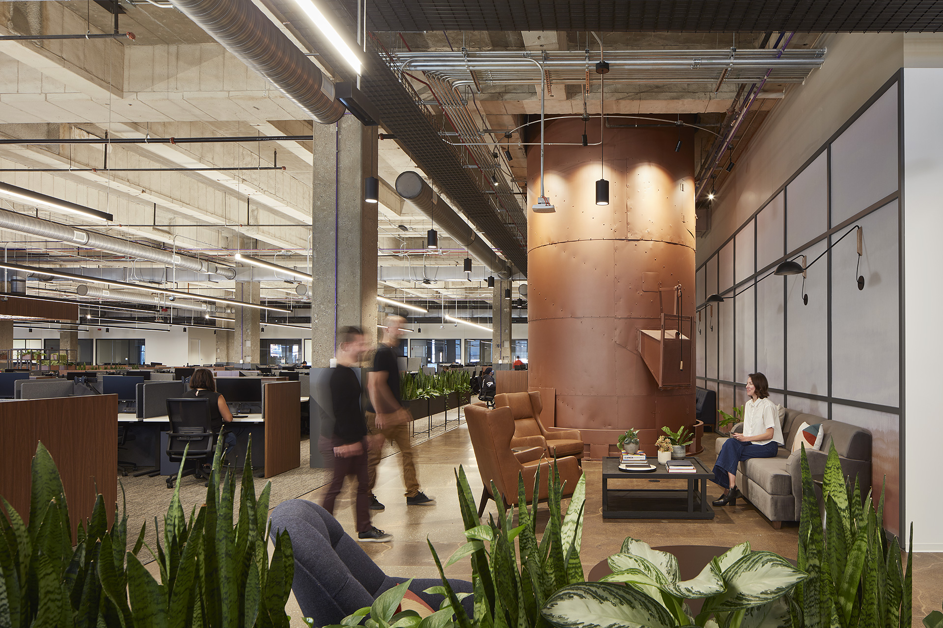 The renovation within the Old Post Office provided the tenant with large, open, collaborative spaces and an impactful café that took advantage of the building's high ceilings.