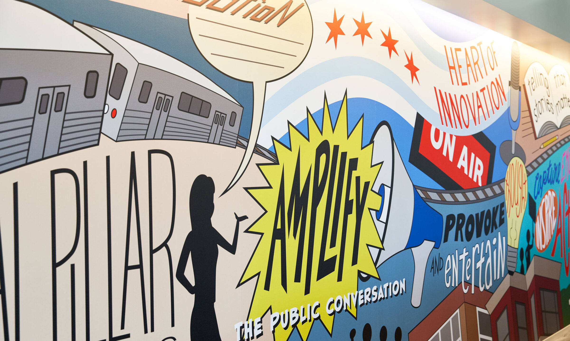 An interior buildout for Chicago National Public Radio affiliate WBEZ at Navy Pier.